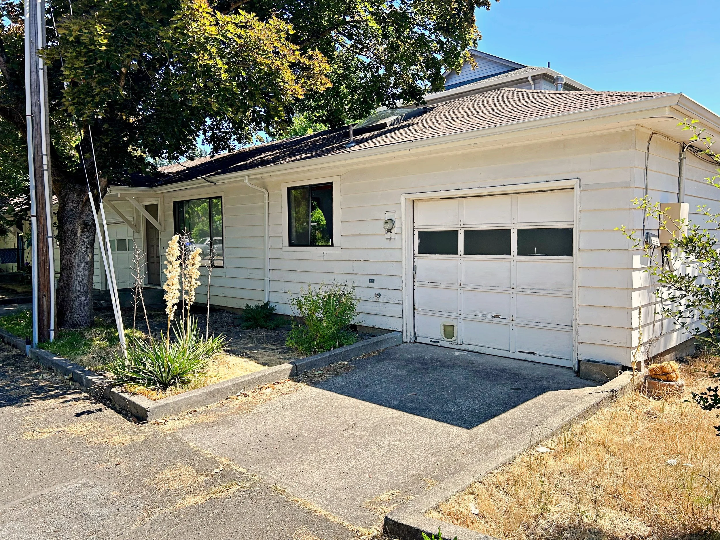 This two bedroom one bathroom apartment feels more like a single family home. Wood floors throughout and multiple skylights give the space an open and airy feeling. The two bedrooms are of equal size, the bathroom is in the center and the front living room is quite spacious; allowing room for whatever one might desire in their living space. The kitchen has ample storage, room for a breakfast table and a large skylight which allows the sun to flood into the space. The attached garage has space for a car and storage. Laundry and dryer are included in the garage. The private back area has a deck and wraps around for a gated access to a side common area. The complex is four units together and a duplex looking over an open landscaped area. It feels more private than the Division address would make one think.