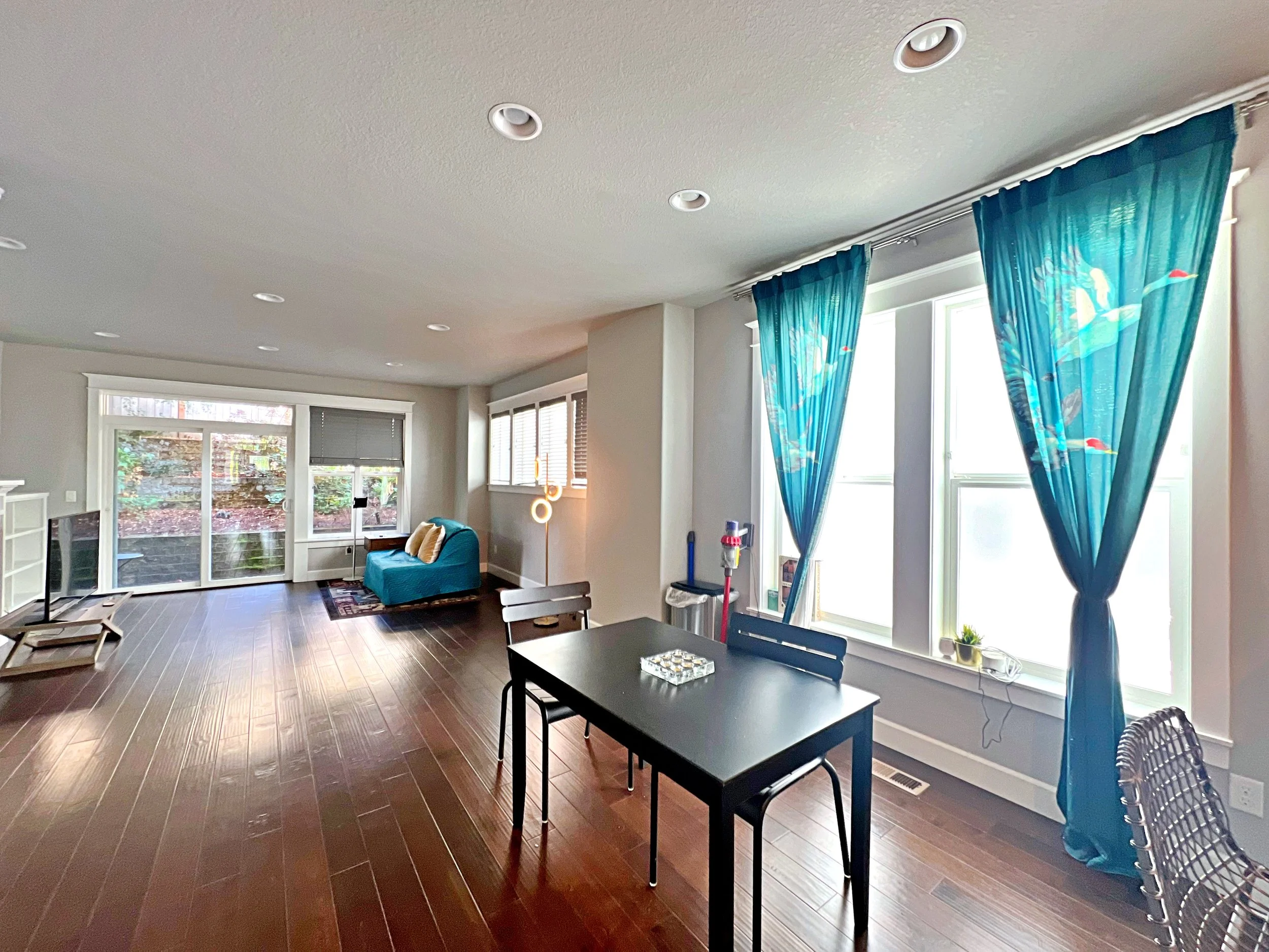 Step inside to find beautiful hardwood floors that flow throughout the main living areas, complemented by large windows that invite an abundance of natural light. The open layout seamlessly connects the kitchen, dining room, and living room, creating an inviting atmosphere for gatherings. The modern kitchen is equipped with stainless steel appliances, making meal prep a delight.